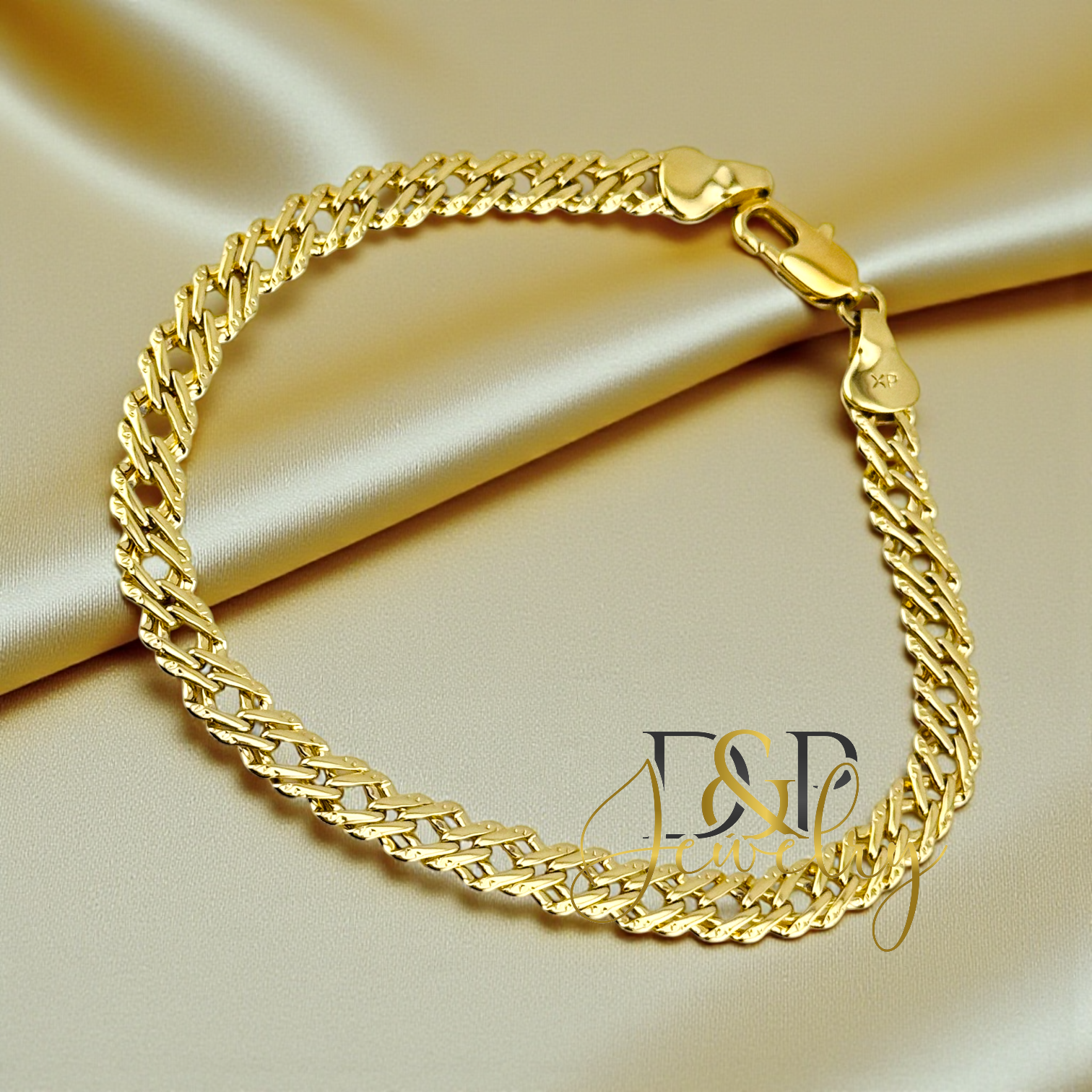 • This refined 14K gold-plated bracelet showcases a lustrous polished link construction that exudes timeless elegance. this versatile piece transitions seamlessly from daily wear to evening events, making it an essential addition to any jewelry collection.