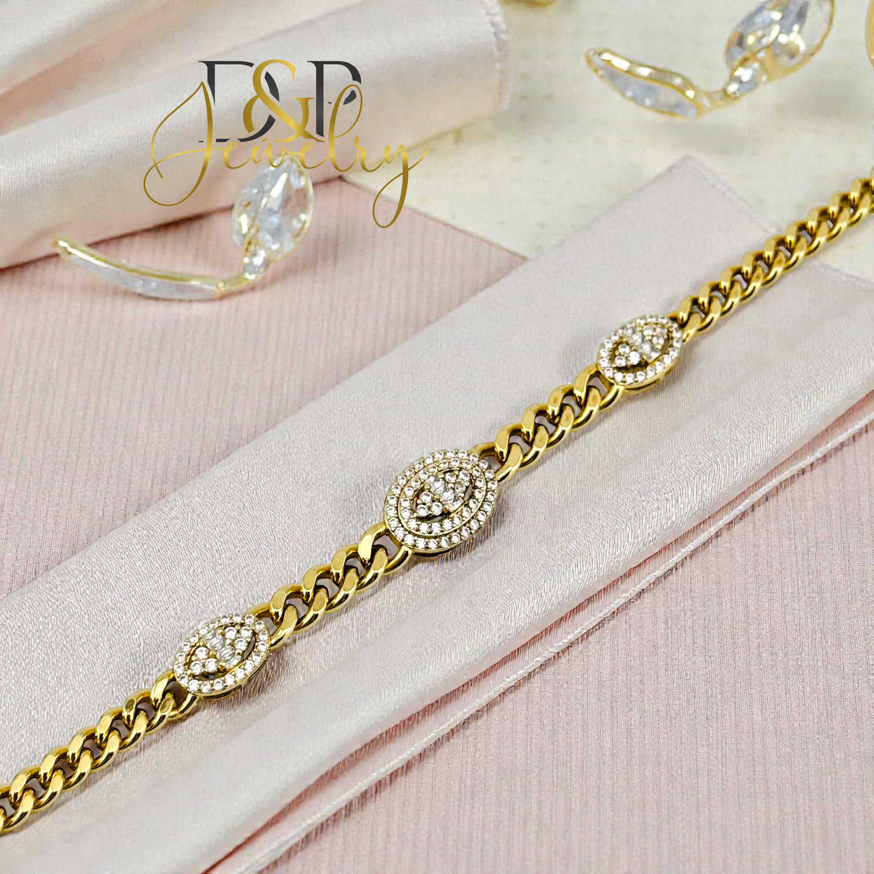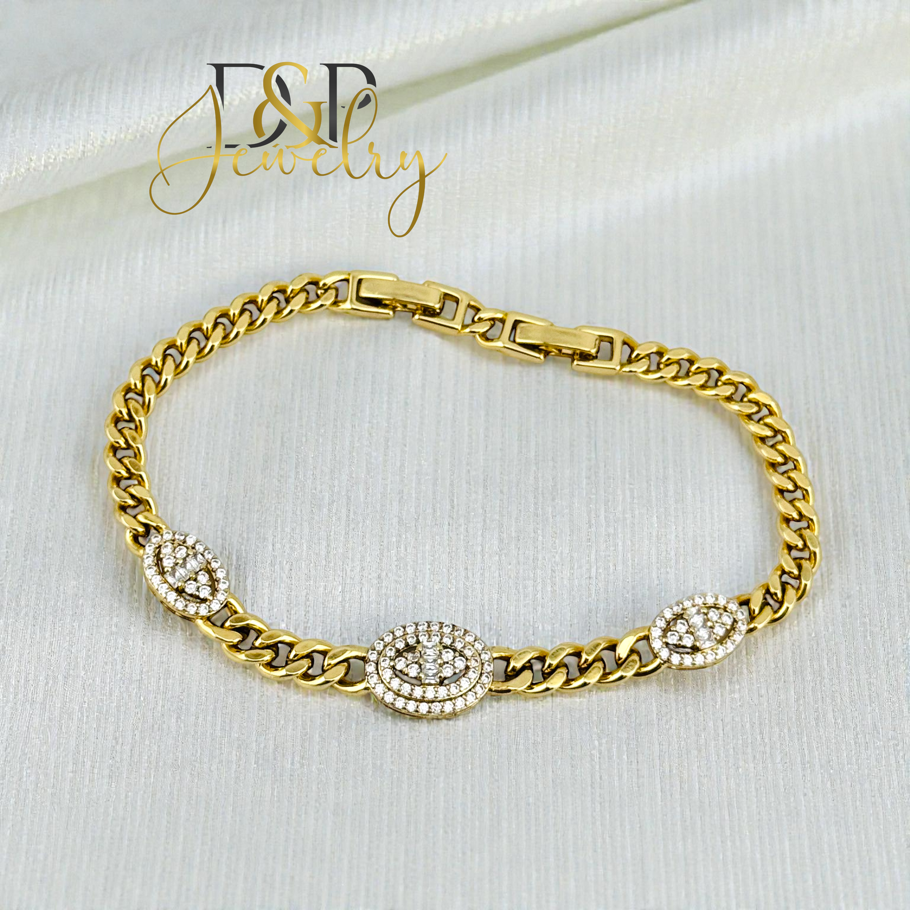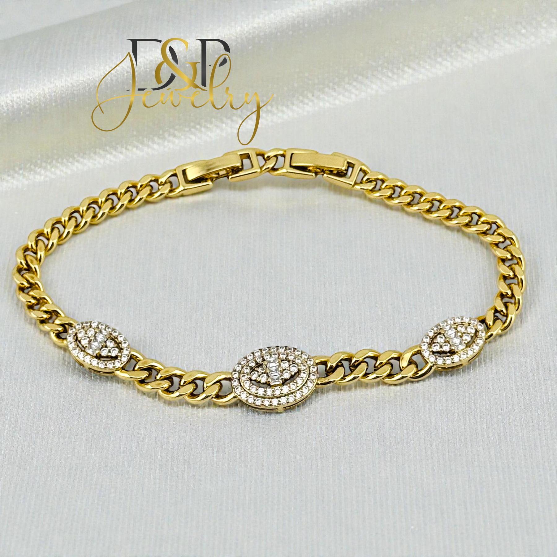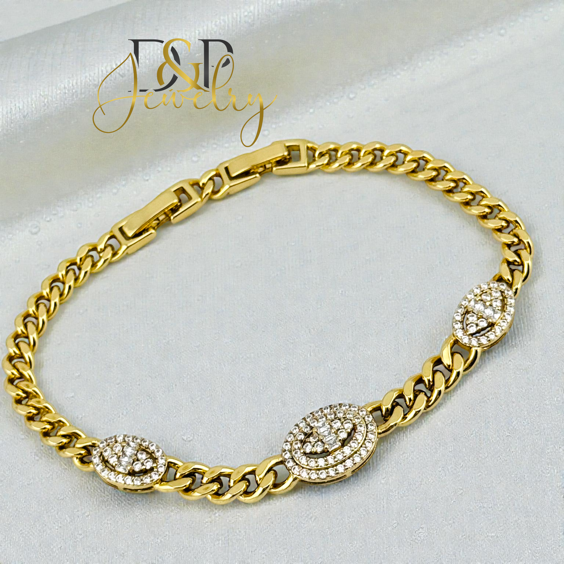 14K GOLD PLATED WHITE STONE THREE OVAL BRACELET BR923