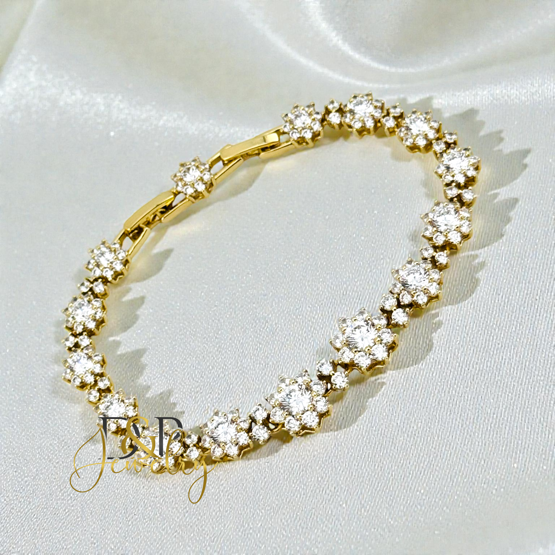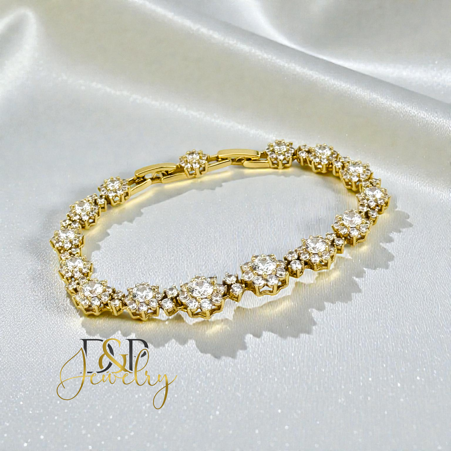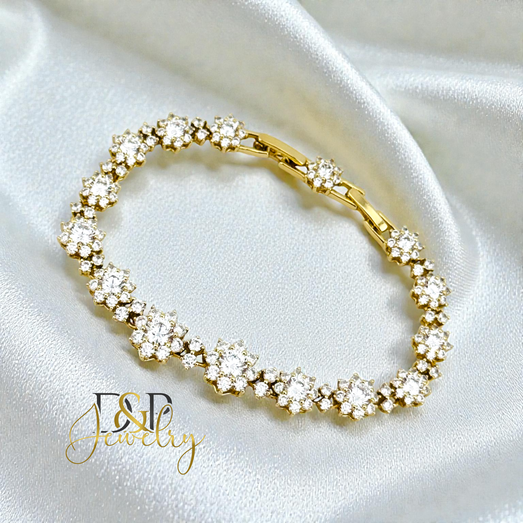 FLOWERS WHITE STONES 14K GOLD PLATED BRACELET BR897