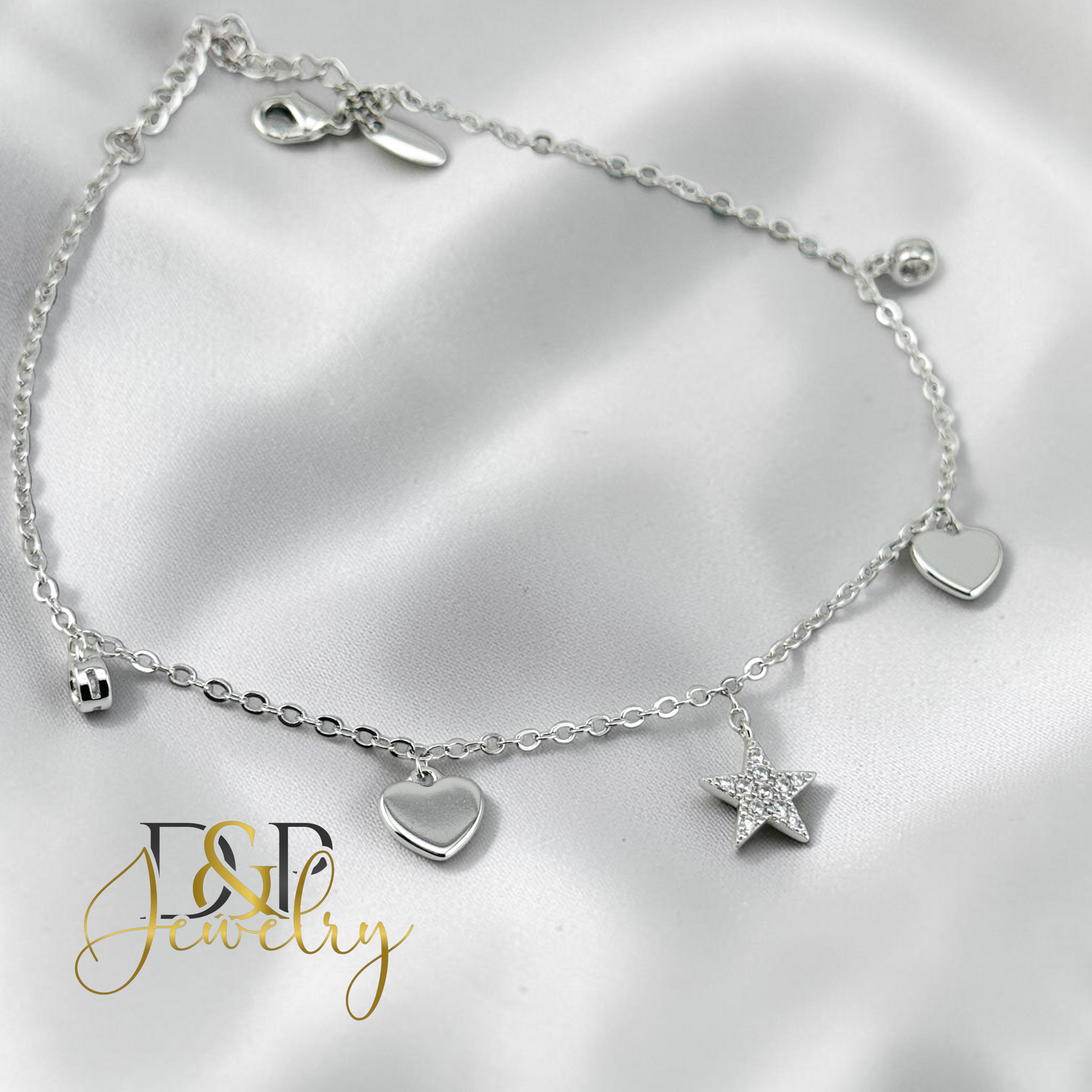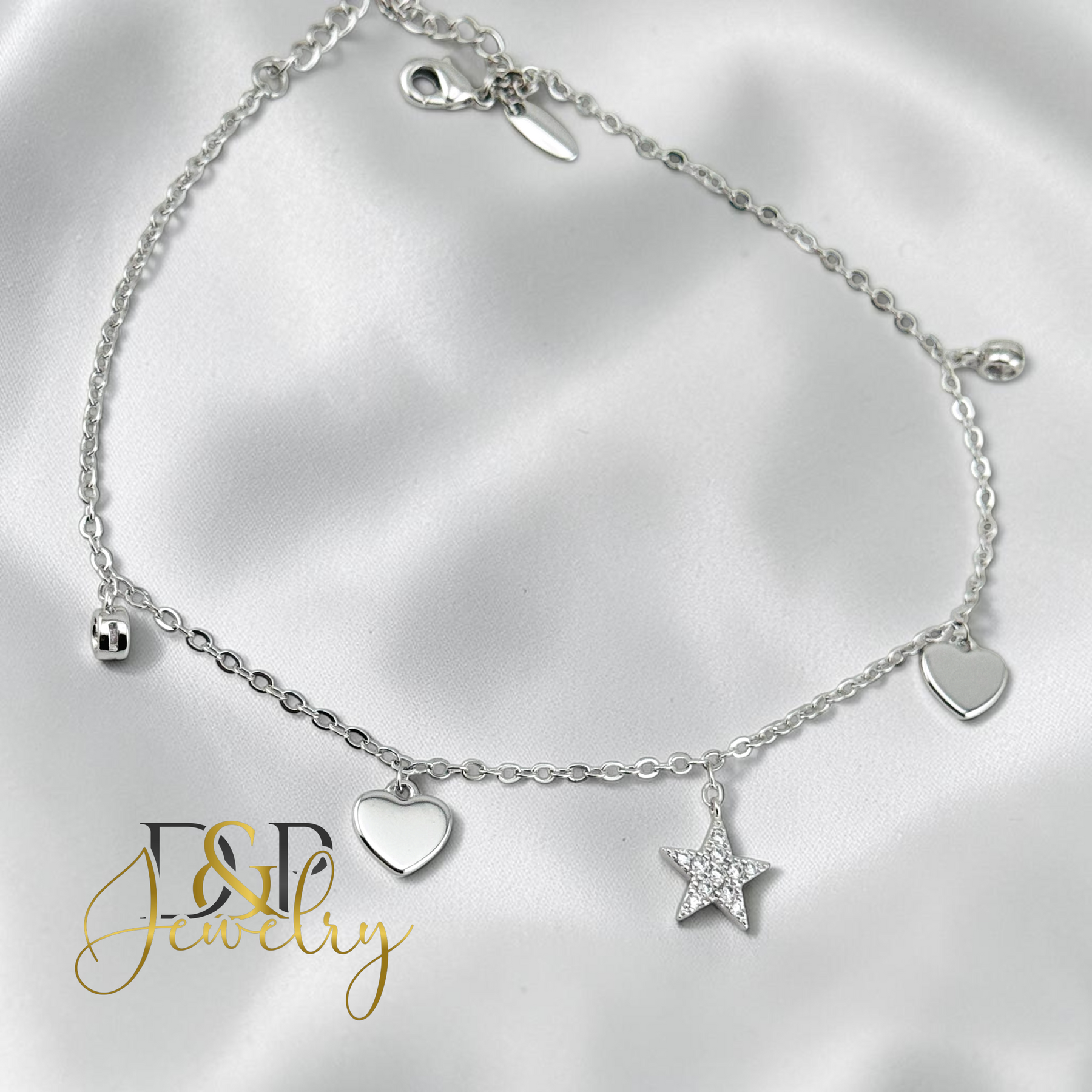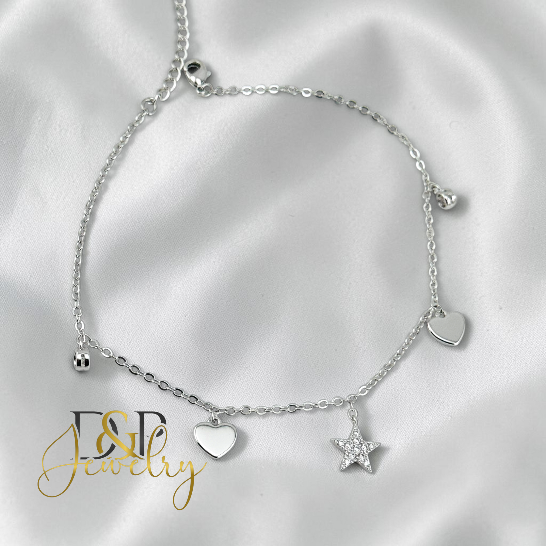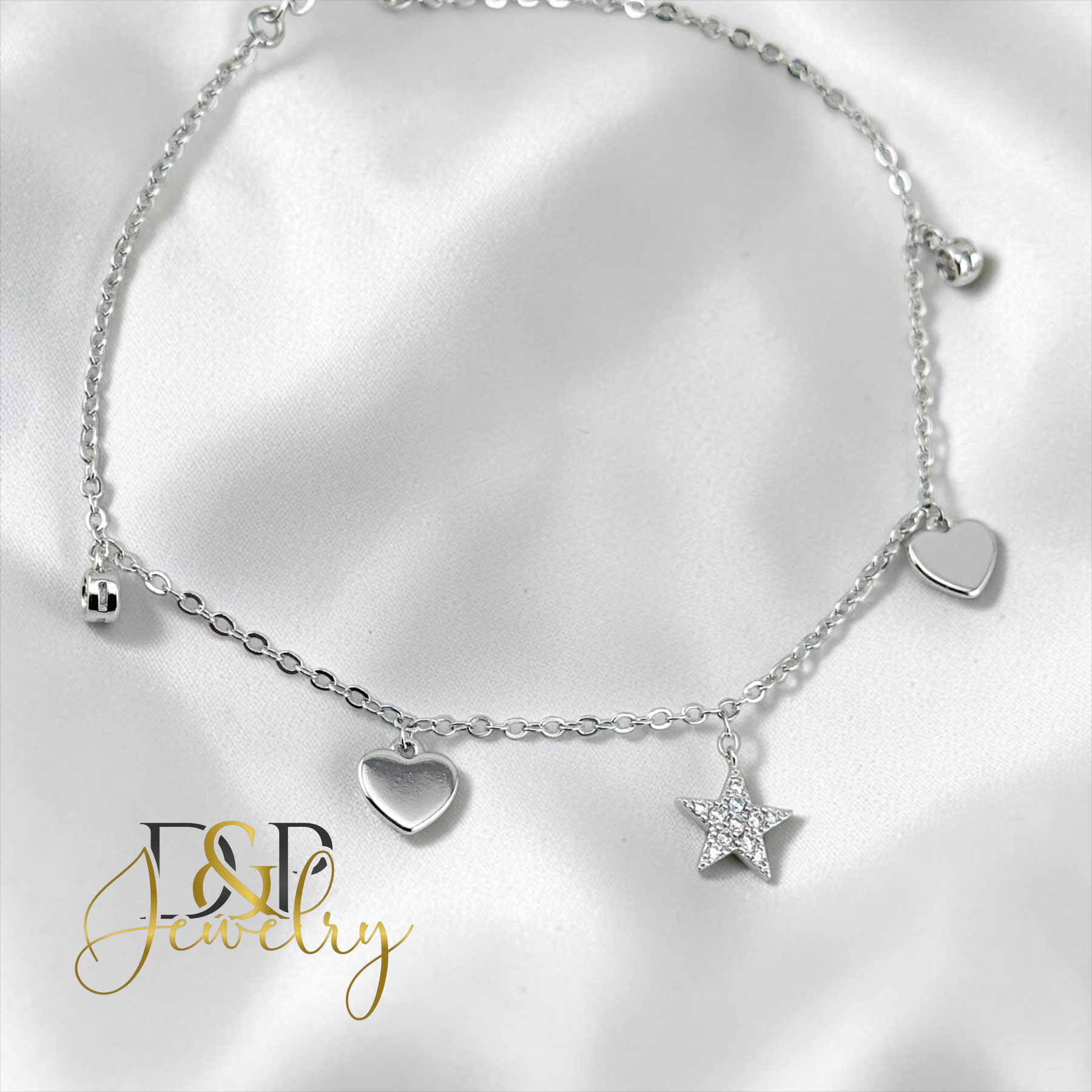 14K WHITE GOLD PLATED HEART CHARM ANKLET BRACELET A46