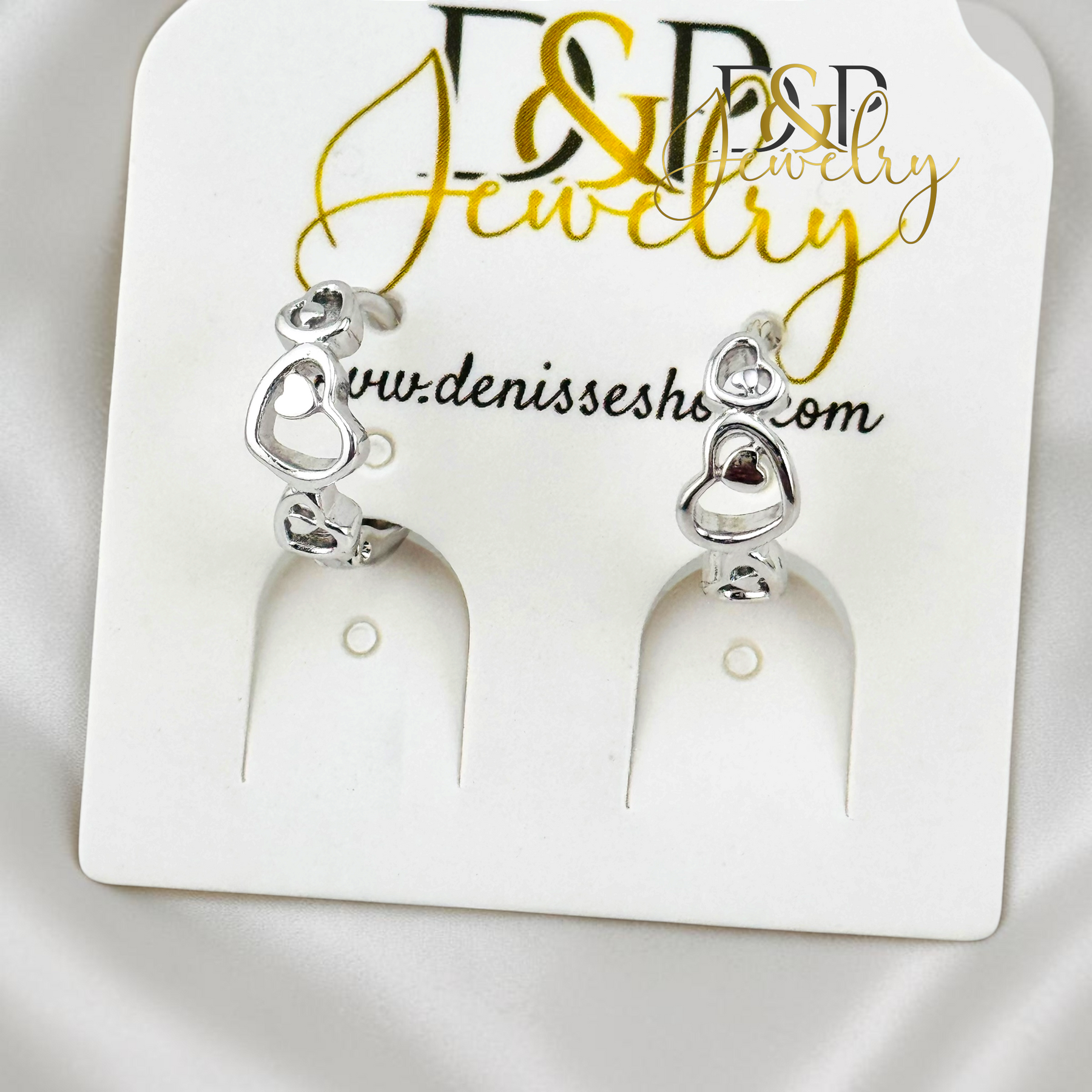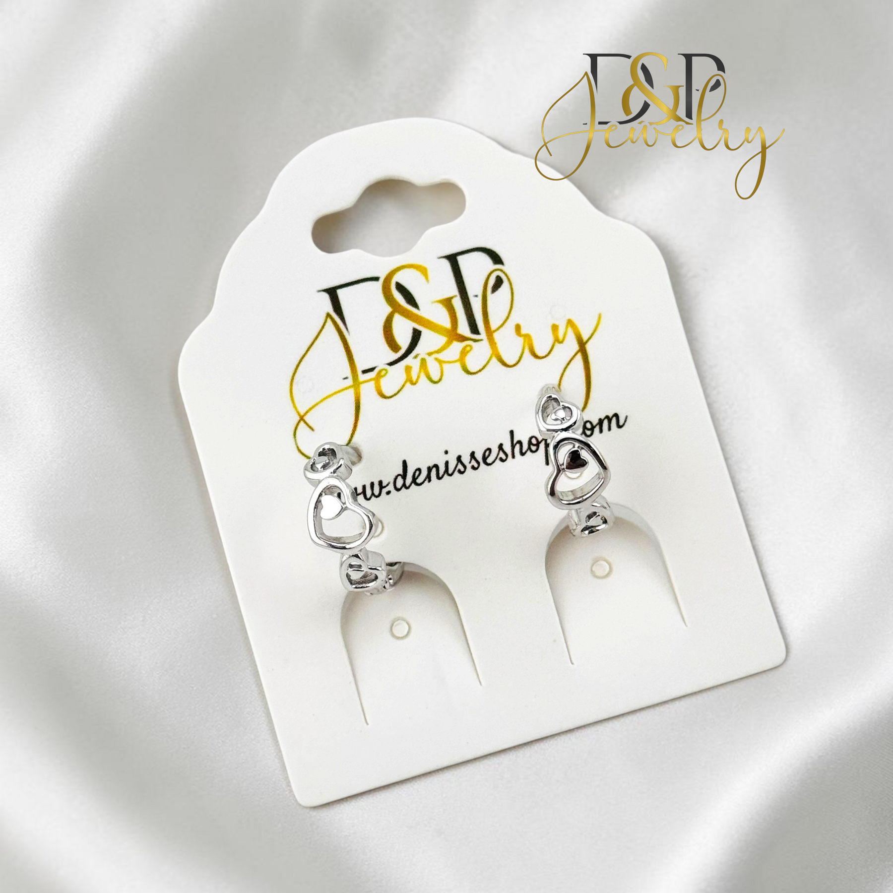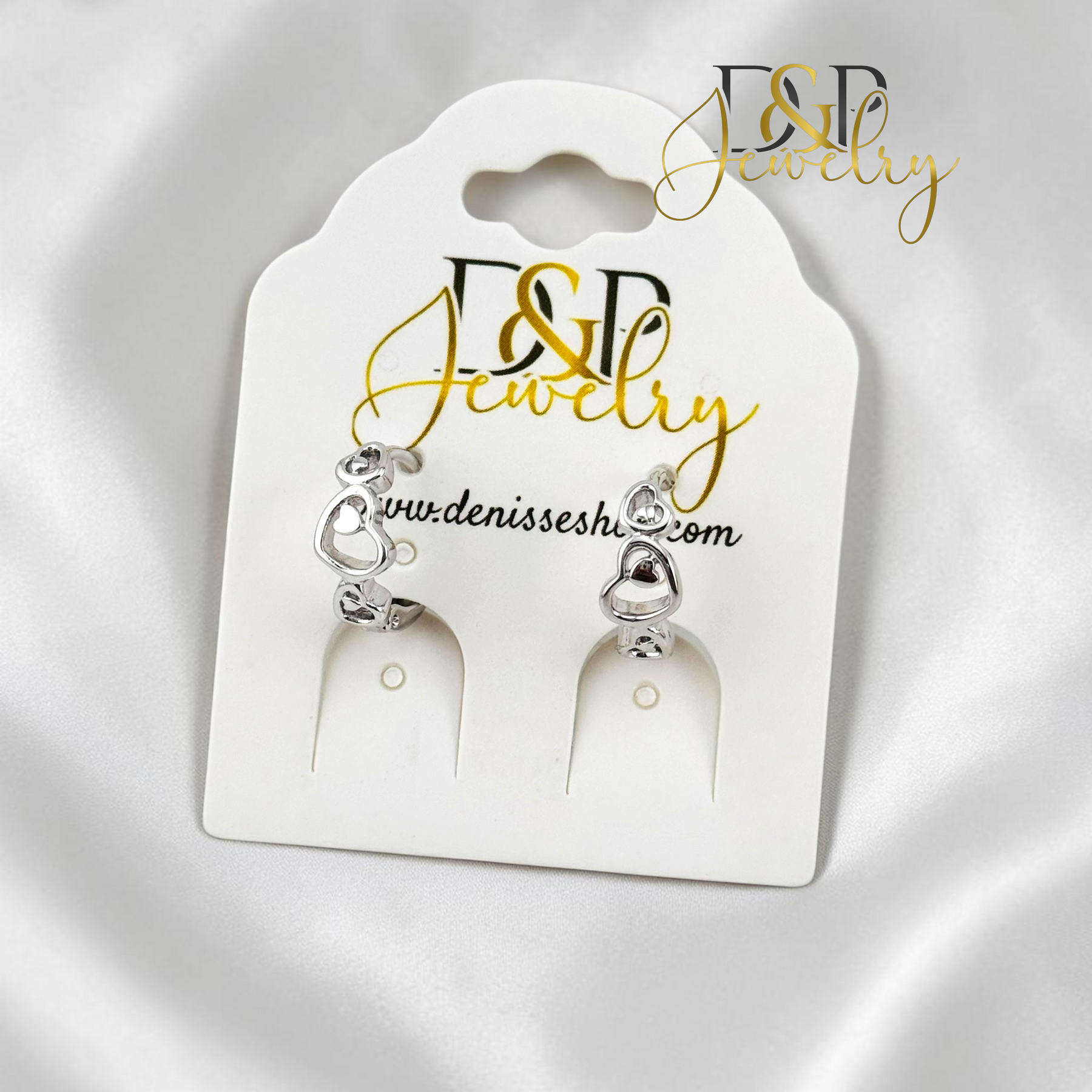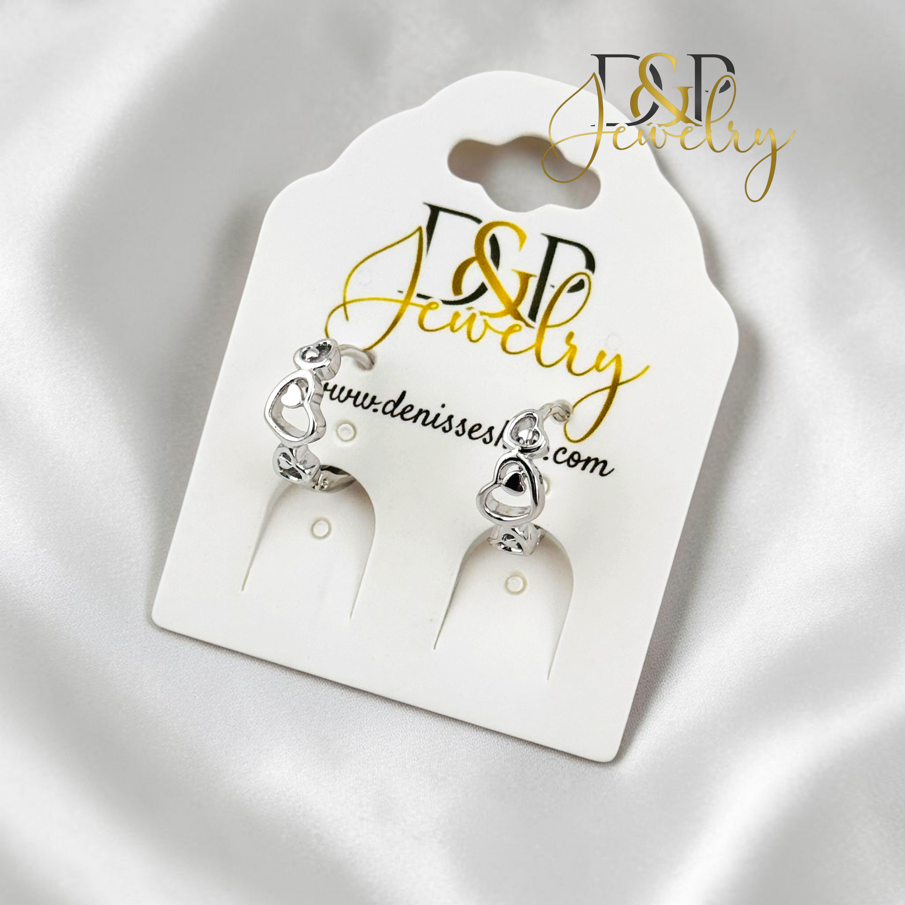 14K WHITE GOLD PLAIN HEART LINKS HOOP EARRING HP106