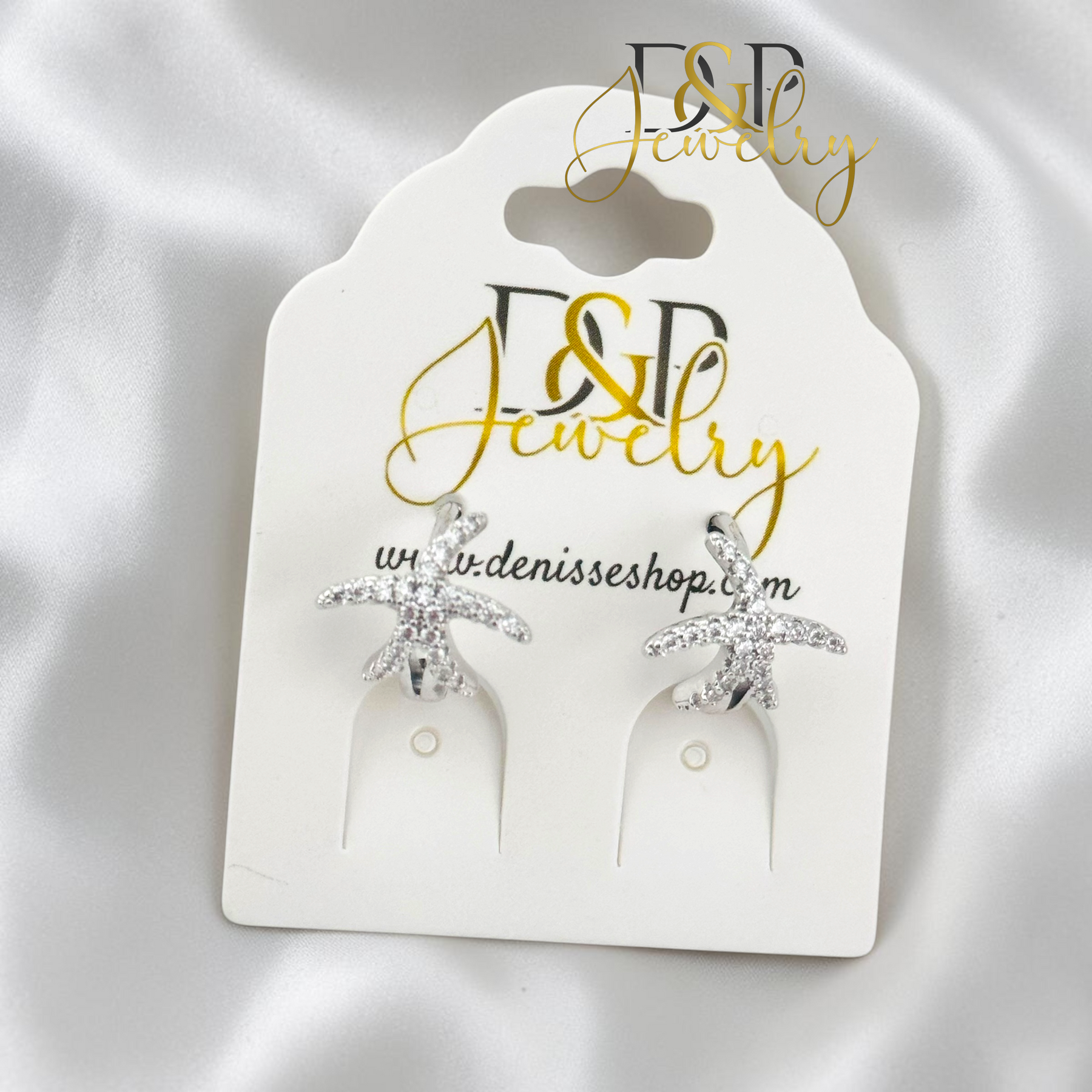 Beautiful 14K laminated White gold Earrings luxury Design along with white Zirconia stones. Hypoallergenic and very Comfortable!